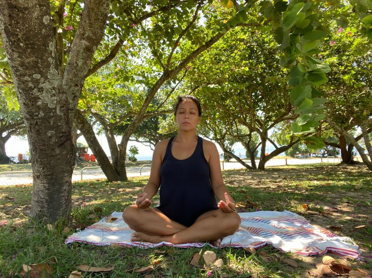 – Para iniciantes: inspira em 3 segundos e expira em 6 segundos (10 respirações)